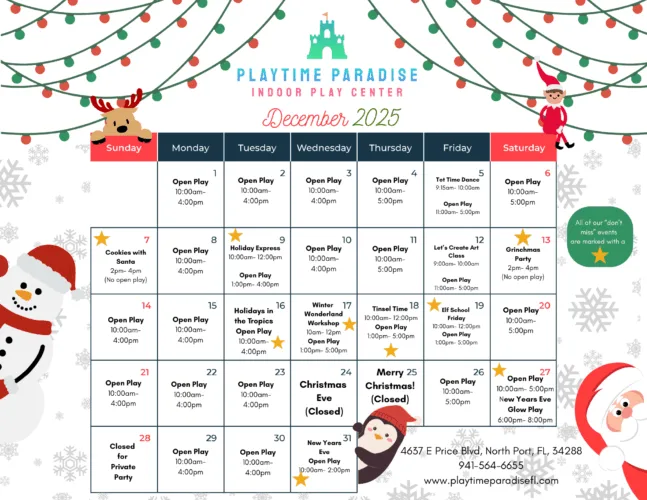 From open play sessions, specialty classes, birthday parties and special events- Playtime Paradise has something for all littles 0-7 years old to enjoy!