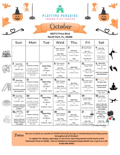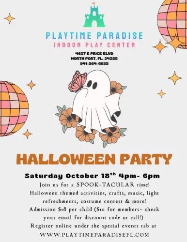 In addition to open play, specialty classes and birthday parties, Playtime Paradise hosts special events for everyone to enjoy! See events below for additional details and to secure your event ticket. Please note that all events have a registration deadline date. Tickets for special events are non refundable if you can no longer make the event.